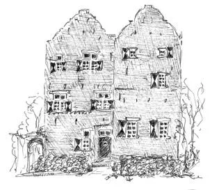 Das unheimlich nervöse Haus ist eine ehemalige Wasserburg aus dem 12. Jahrhundert. Einst war sie von einem Wassergraben umgeben, der aus dem Wasser eines nahegelegenen Flüsschens gespeist wurde. Heute sitzt die kleine Burg allerdings auf dem Trockenen und man muss genauer hinschauen, um in dem alten Kasten aus Ziegelsteinen eine Burg zu erkennen.